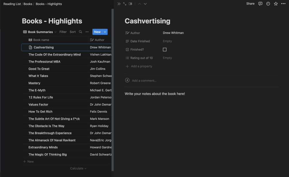 Every book you read will have some golden nuggets, as well as a lot of fluff. Ignore the fluff and write the golden nuggets in this Notion template!
